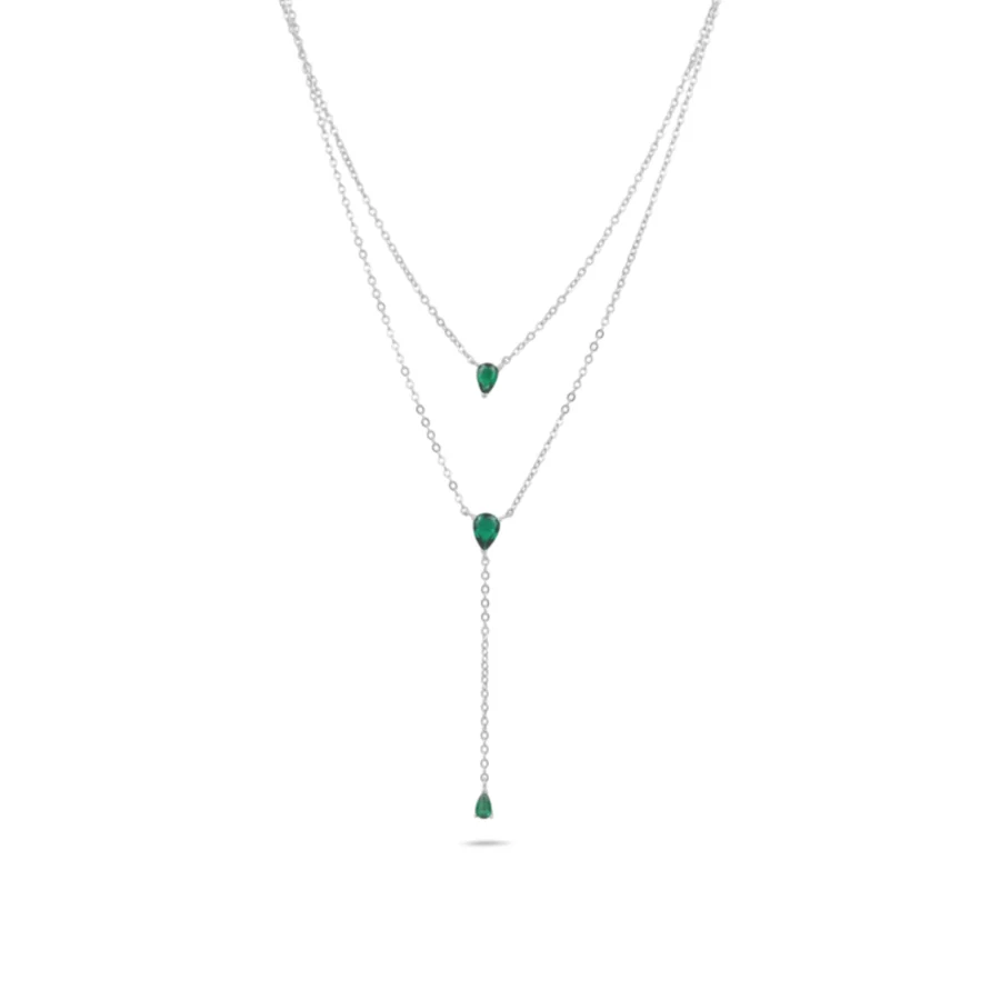 שרשרת כסף 925 אלגנטית בשכבות כפולות, המעוטרת בתליוני טיפה בצבע ירוק עמוק. העיצוב הייחודי משלב שתי שכבות של שרשראות, המעניקות מראה מודרני ועדין. התליונים הירוקים משובצים לאורך השרשרת ומשדרים תחכום ויוקרה. מושלם להוספת נופך של צבע וסטייל לכל הופעה, בין אם לאירוע מיוחד או לשימוש יומיומי. ✨